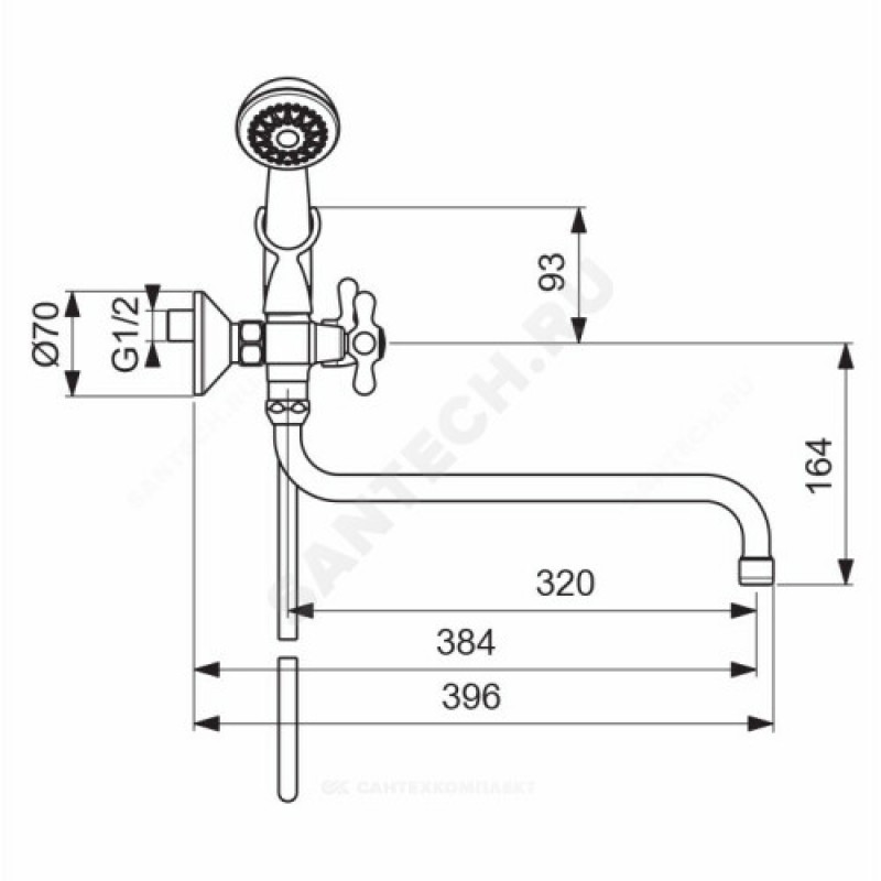 | Наименование производителя | "Ретро" смеситель для ванны, излив 320 мм, керамический переключатель, хром |