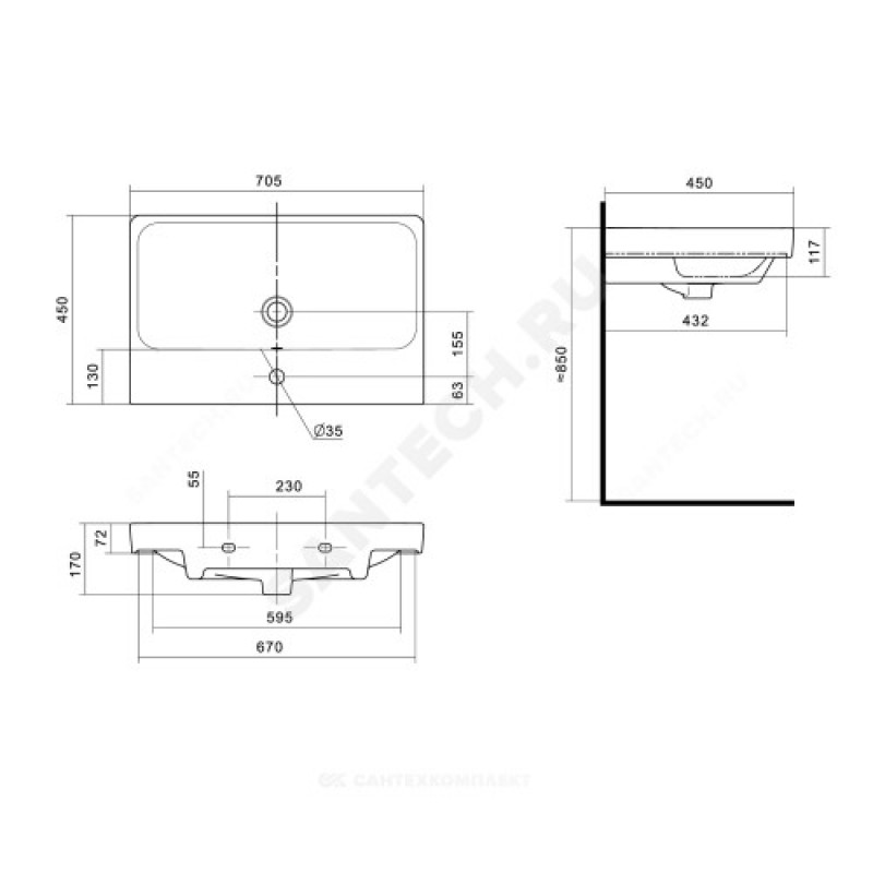 | Ширина, мм | 705 |