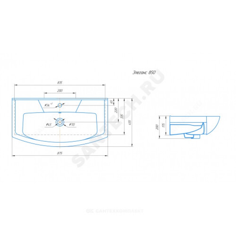 | Наименование производителя | Умывальник Элеганс 850 |