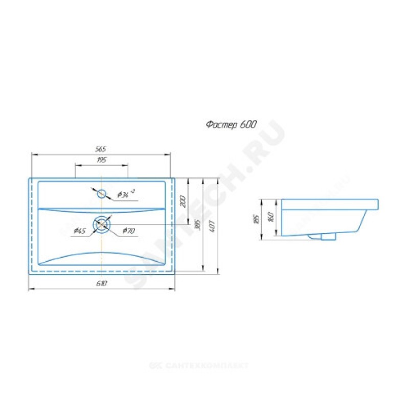 - Артикул:Умывальник мебельный Фостер 60 белый Kirovit (Кировская керамика