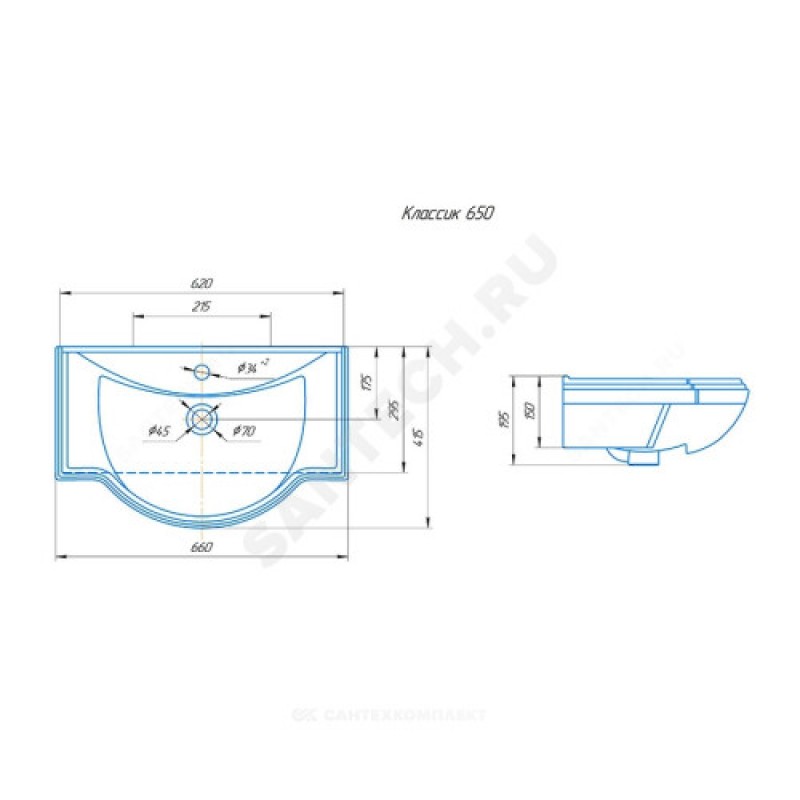 | Наименование производителя | Умывальник Классик 650 |