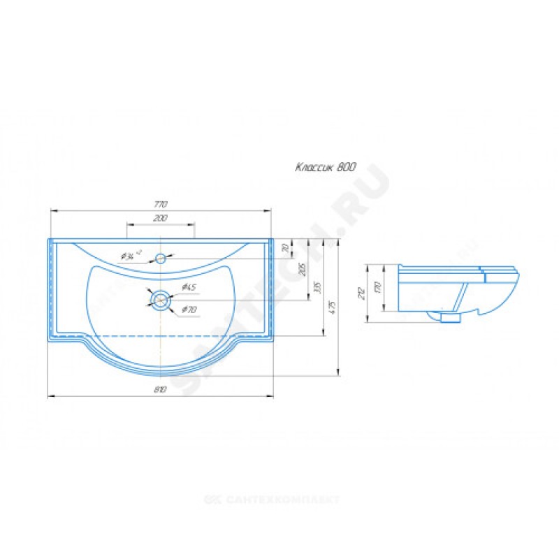 | Наименование производителя | Умывальник Классик 800 |