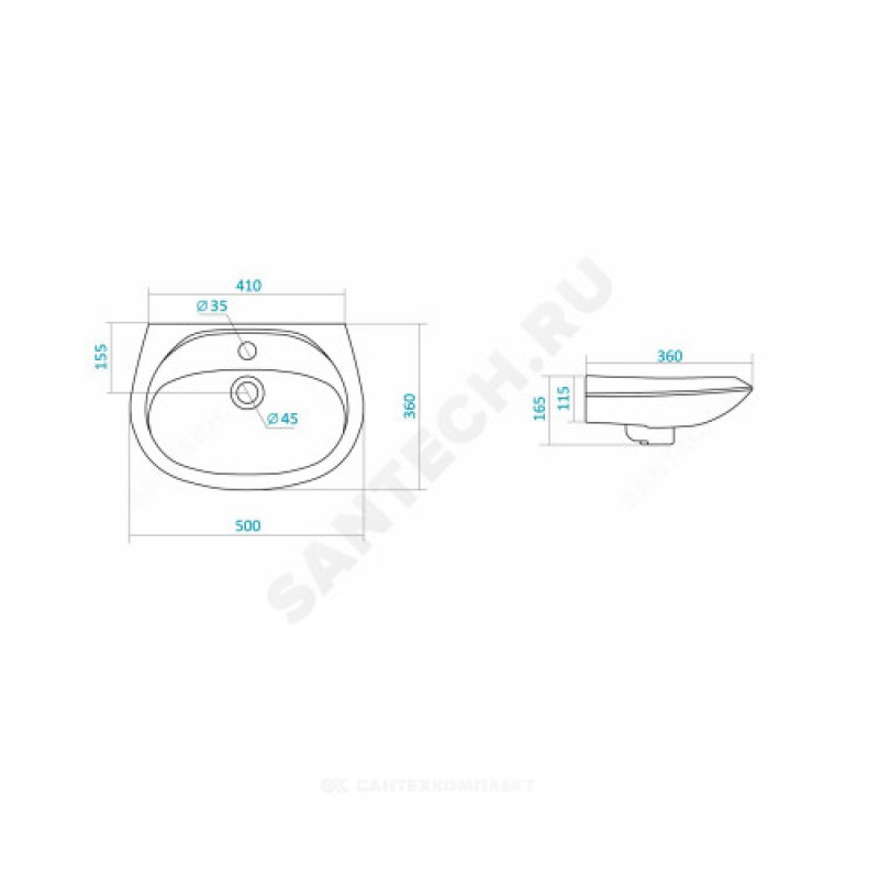 | Наименование производителя | Раковина Santek Бриз 50 |