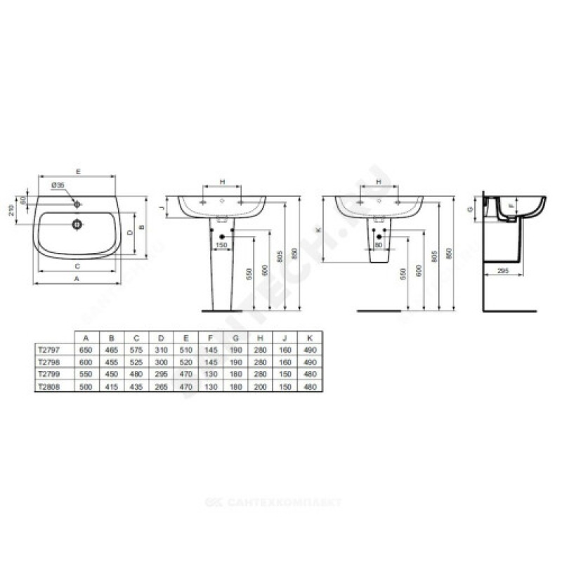 | Возможность установки | к стене, на пьедестал, на полупьедестал |