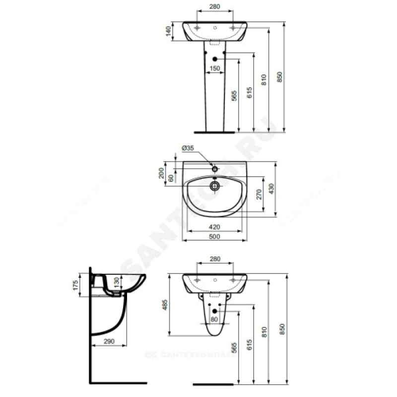 | Возможность установки | к стене, на пьедестал, на полупьедестал |