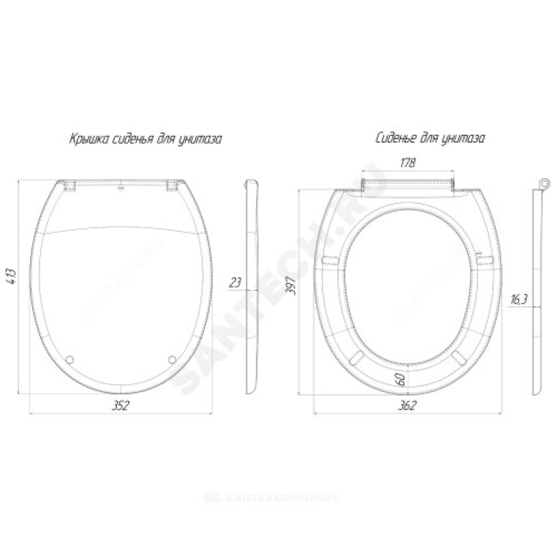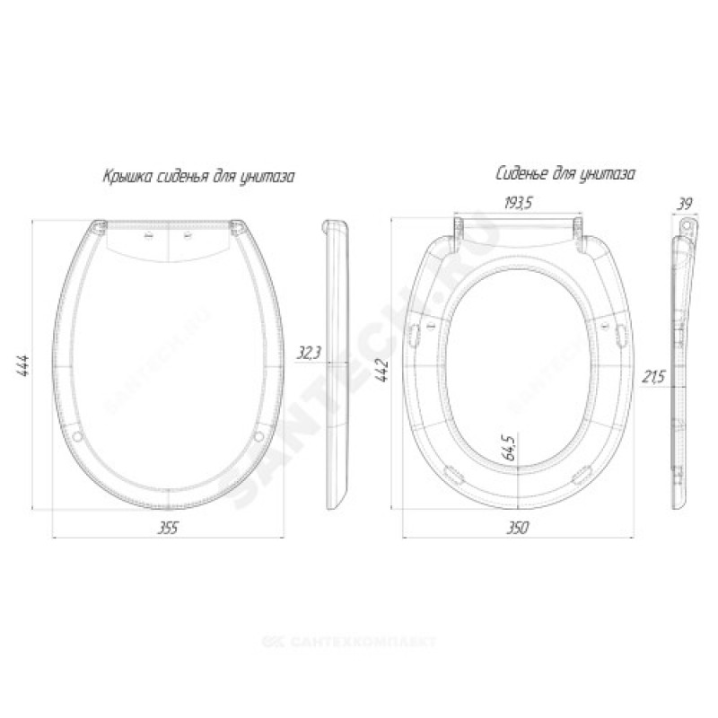 | Примечание | Сиденье для унитаза из полипропилена с креплением для унитаза. Совместимо со следующими моделями: -"Элегант" (ЗАО "Кировская керамика"). "Элегант", "Венеция", "Ранок", "Орхидея", "Славута", "Полесье" (ЗАО "Славутский комбинат Будфарфор"). "Гермес" (ООО "Керамика" ROCA GROUP). "Дебют", "Фаворит", "Нарцисс", "Салют", "Стиль", "Универсал", "Детский" (ЗАО "Лобненский комбинат строительного фарфора"). "Находка","Уют", "Комфорт", "Гессо W102", "Гессо W101" (ОАО "Волгоградский керамический завод" г.Волгоград). "Волна" (ОАО "ЗКИ", г.Екатеринбург). "Классический", "Юбилейный", "Люкс" (ЗАО "Фаянс", г.Смоленск) |