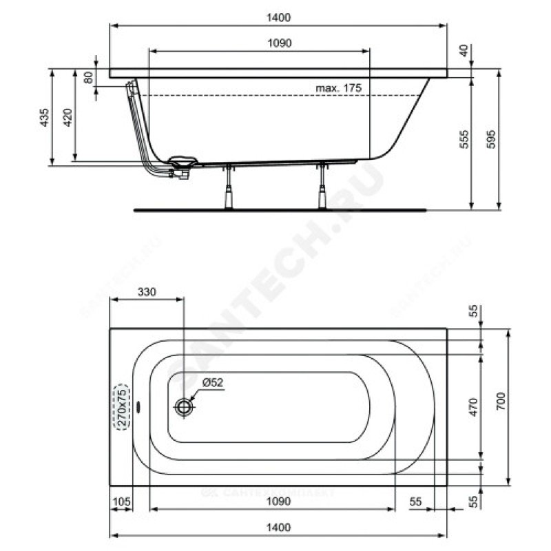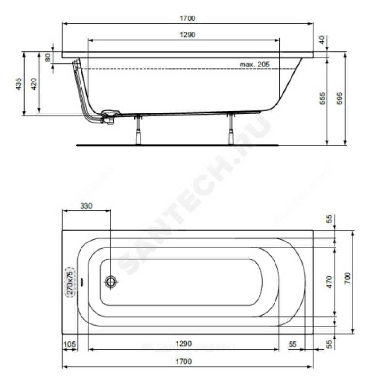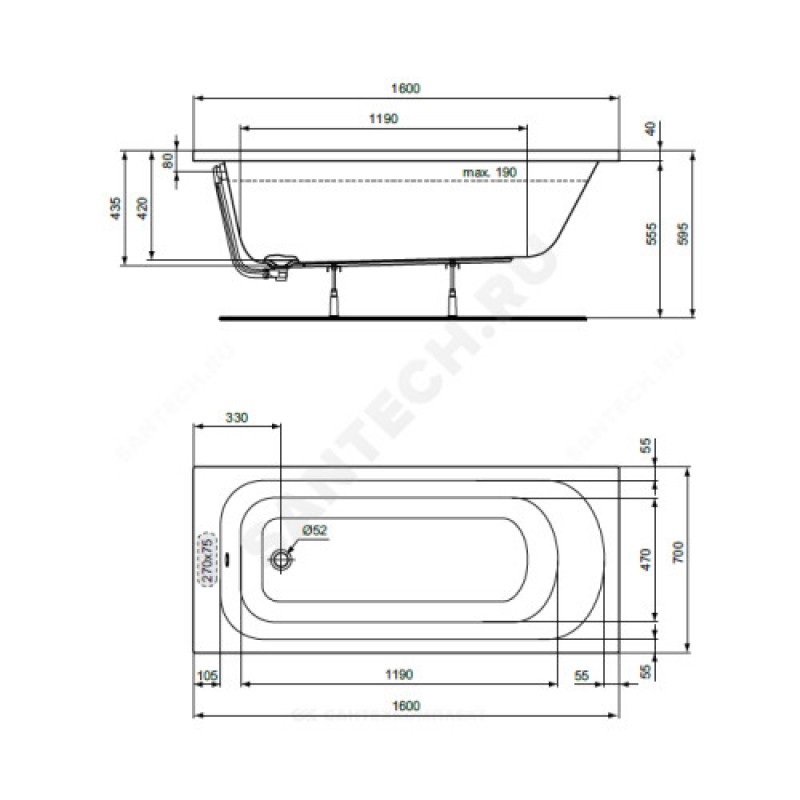 | Наименование производителя | SIMPLICITY Прямоугольная ванна 150х70 см для встраивания или для монтажа с панелями, без ножек, без системы слива-перелива, отверстие слива 52 мм, вместимость 175 л |