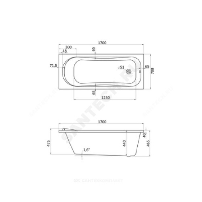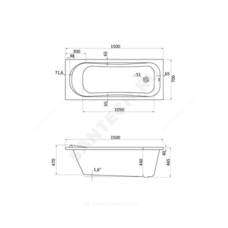 | Диаметр сливного отверстия, мм | 52 |