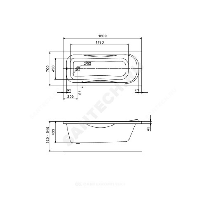 | Диаметр переливного отверстия, мм | 52 |