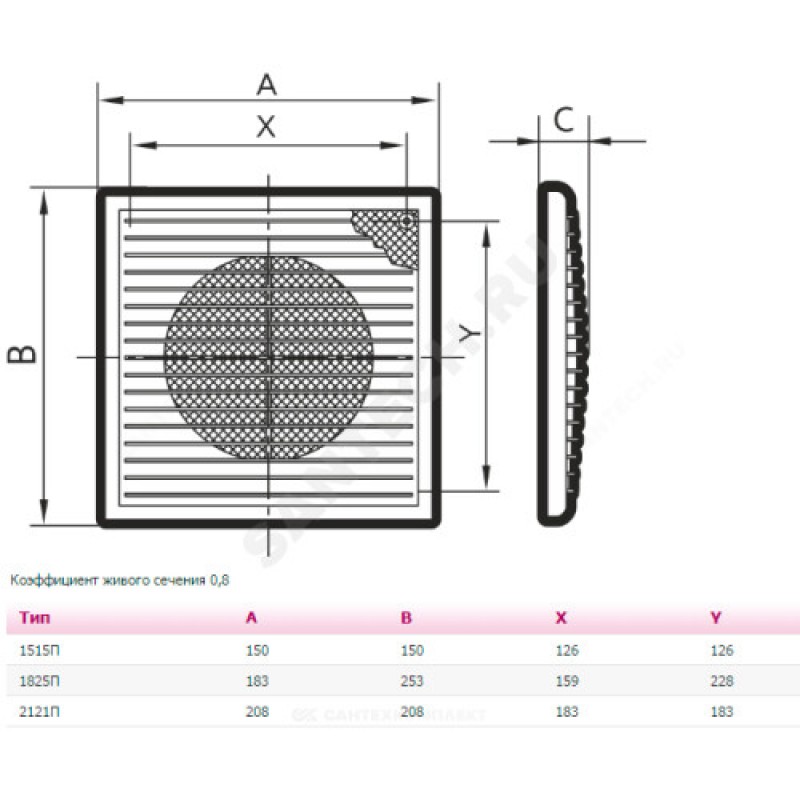 | Наименование производителя | Решетка вентиляционная приточно-вытяжная АБС208х208, 2121П |