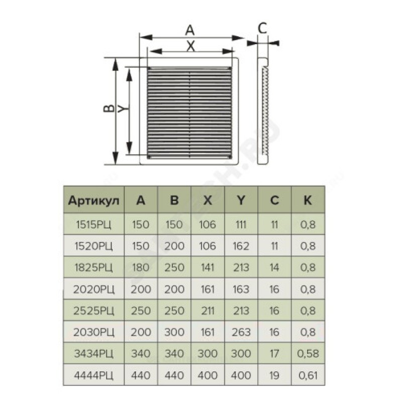 | Наименование производителя | Решетка вентиляционная вытяжная АБС 340х340, 3434РЦ |