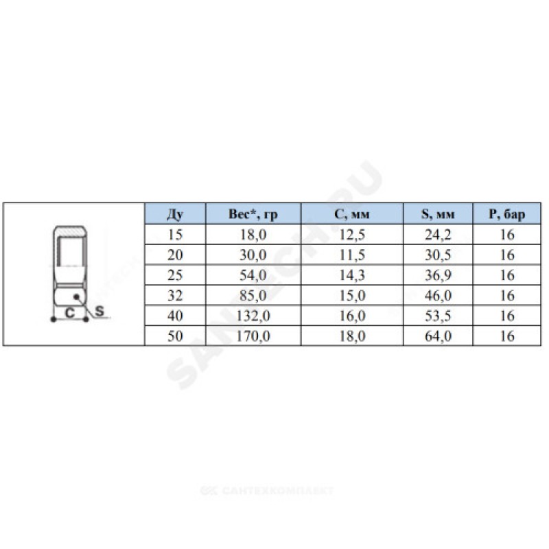Диаметр условный, мм 15