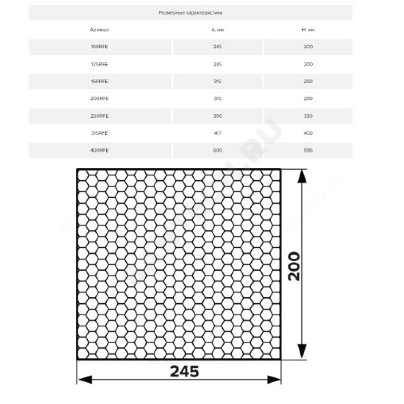 | Наименование производителя | Элемент сменный, серия RFE, для фильтра 200FGB, класс очистки G4, M5 |