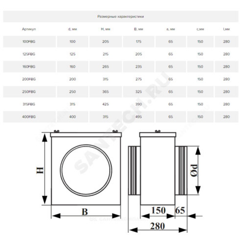 | Диаметр или поперечное сечение воздуховода (вентилятора) | D400 |