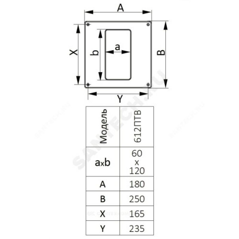 | Диаметр или поперечное сечение воздуховода (вентилятора) | 60х120 |