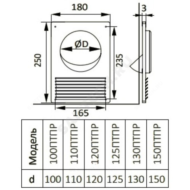 | Диаметр или поперечное сечение воздуховода (вентилятора) | D110 |