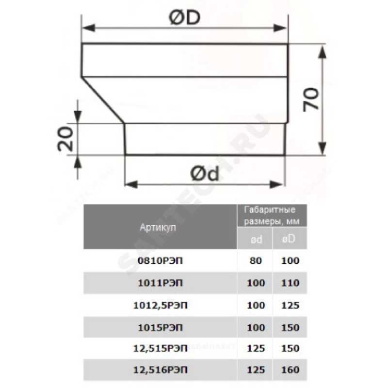 | Наименование производителя | Соединитель эксцентриковый круглого воздуховода с круглым пластик D100/125 |
