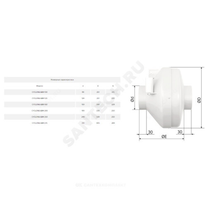 | Наименование производителя | Вентилятор центробежный канальный, серия CYCLONE EBM, пластиковый корпус, двигатель EBM-papst, D100 |