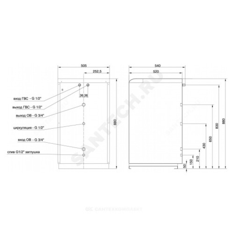 | Подключение к контуру отопления | 3/4" |