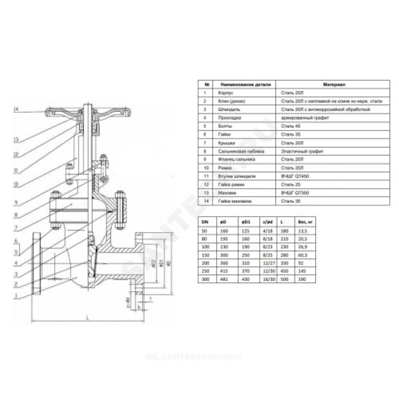 - Артикул:Задвижка клиновая сталь 30с64нж Ду 80 Ру25 фл